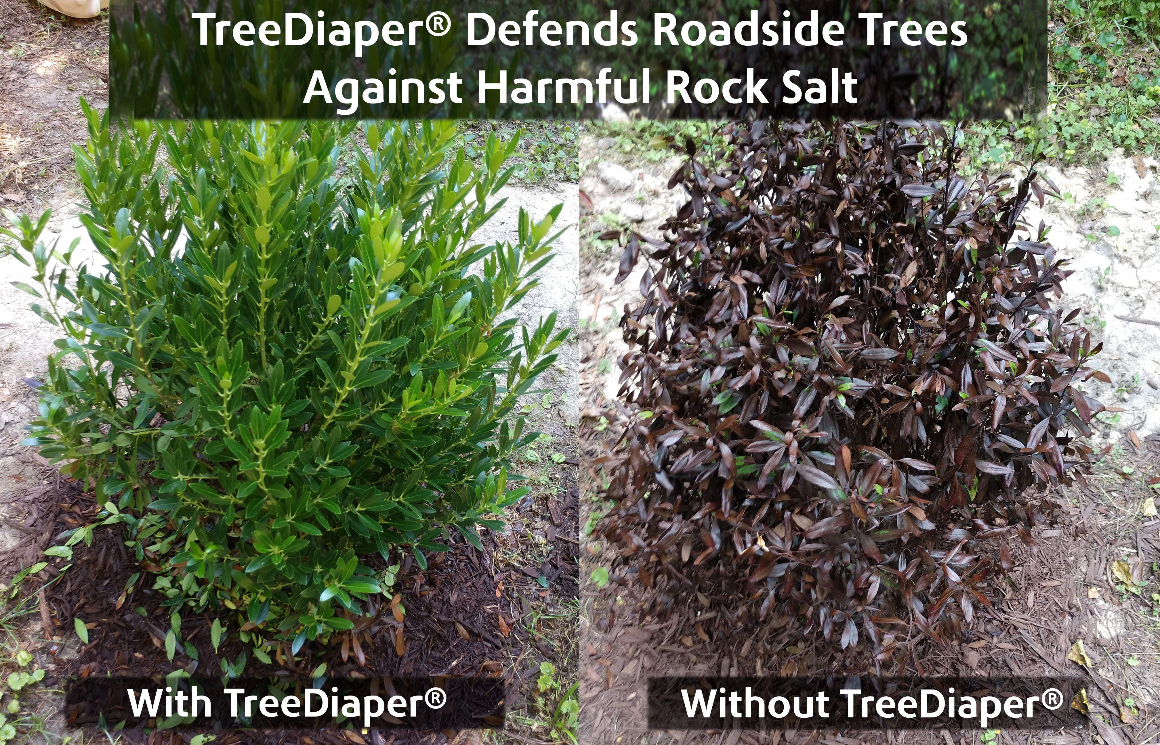 When dangerous winter conditions threaten safety, salt is a necessity. Safety is the top priority. When you must use salt, consider using TreeDiaper® to give your plants a better chance of survival.